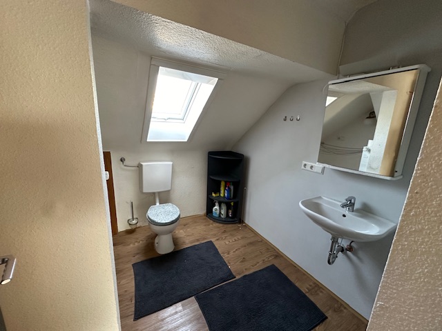 Eine helle 3-Zimmer-Dachgeschosswohnung eines Dreifamilienhauses.Die Wohnung erstreckt sich über ca. 61 m² und wurde bisher als WG genutzt. Das Badezimmer verfügt über eine Dusche und ein WC.
