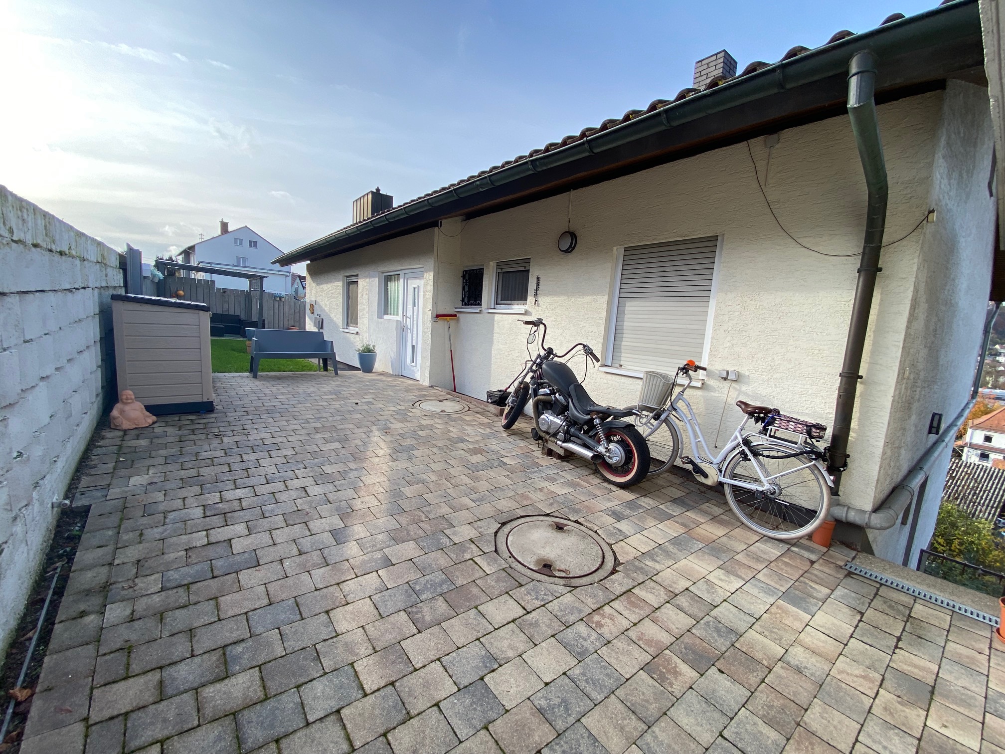 Zur Immobilie gehören eine Garage, ein Stellplatz im Hof vor dem Haus, mehrere Terrassen sowie ein Balkon. Die Lage in Hang- und Aussichtslage sorgt für eine angenehme Atmosphäre und einen herrlichen Ausblick.