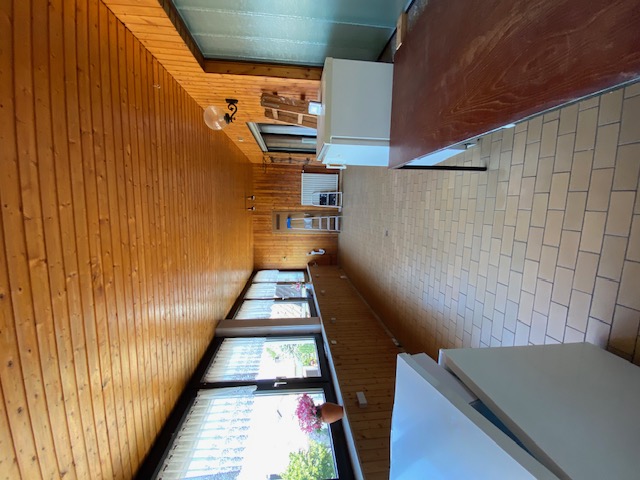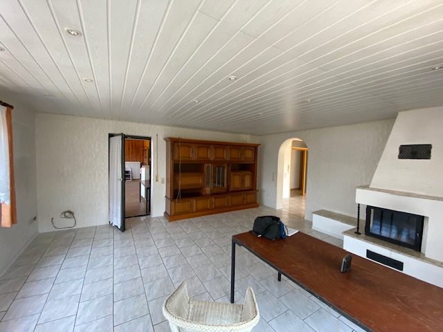 Die Wohnfläche im Obergeschoss mit ca.110 qm verteilt sich auf ein helles Wohnzimmer mit Zugang zur Loggia, zwei Schlafzimmer, ein Badezimmer, ein Gäste-WC, eine Küche mit Speisekammer und ein Esszimmer mit Garten-Anschluss sowie einer Terrasse mit Markise für entspannte Sommerabende. Der schön angelegte Garten mit einem Gewächshaus bietet Platz zum Spielen für Kinder oder Haustiere. Auch der Bereich hinter dem Haus ist bepflanzt und es gibt hier einen Zugang zum überdachten Abstellraum über der Wohnwagengarage der auch für Gartengeräte oder als Holzlager verwendet werden kann. Im Wohnzimmer befindet sich ein stillgelegter offener Kamin.