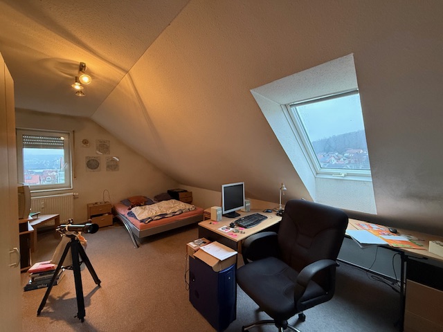 Über eine Treppe gelangen Sie in das obere Geschoss, wo sich ein großzügiges Studio befindet. Dieser Bereich eignet sich als weiteres Schlafzimmer, Homeoffice oder Hobbyraum. Zusätzlich steht Ihnen hier ein Abstellraum zur Verfügung.