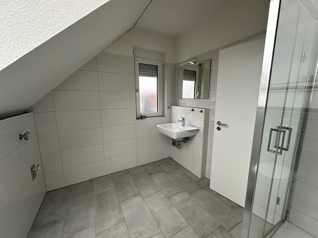 Dieser Dachgeschosswohnung mit Schrägen umfasst 2 Zimmer, eine offene Küche mit Einbauküche, ein Bad mit Dusche sowie einer kleinen Kammer und einem Balkon.Für die Einbauküche fallen zusätzlich monatlich 50.- Euro an.