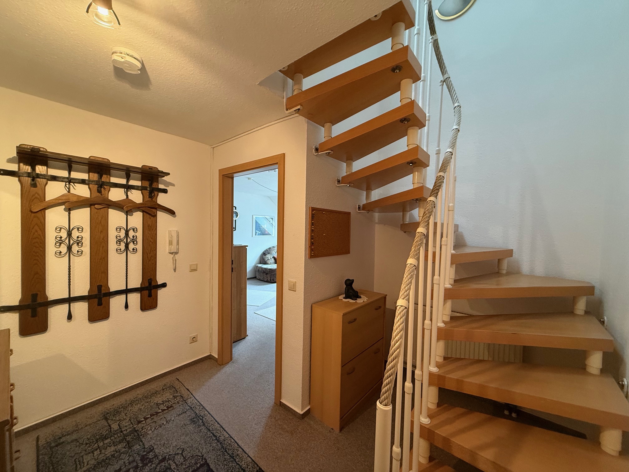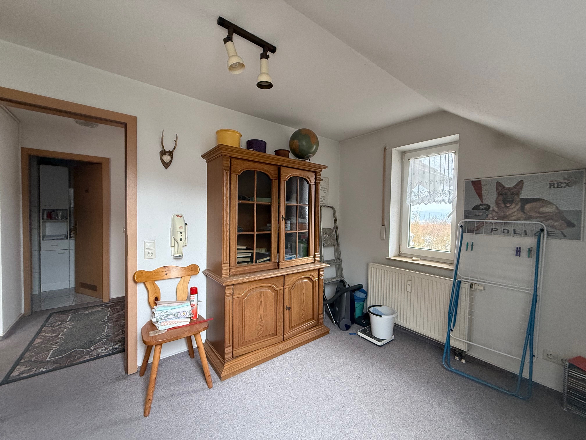 Über eine Treppe gelangen Sie in das obere Geschoss, wo sich ein großzügiges Studio befindet. Dieser Bereich eignet sich als weiteres Schlafzimmer, Homeoffice oder Hobbyraum. Zusätzlich steht Ihnen hier ein Abstellraum zur Verfügung.